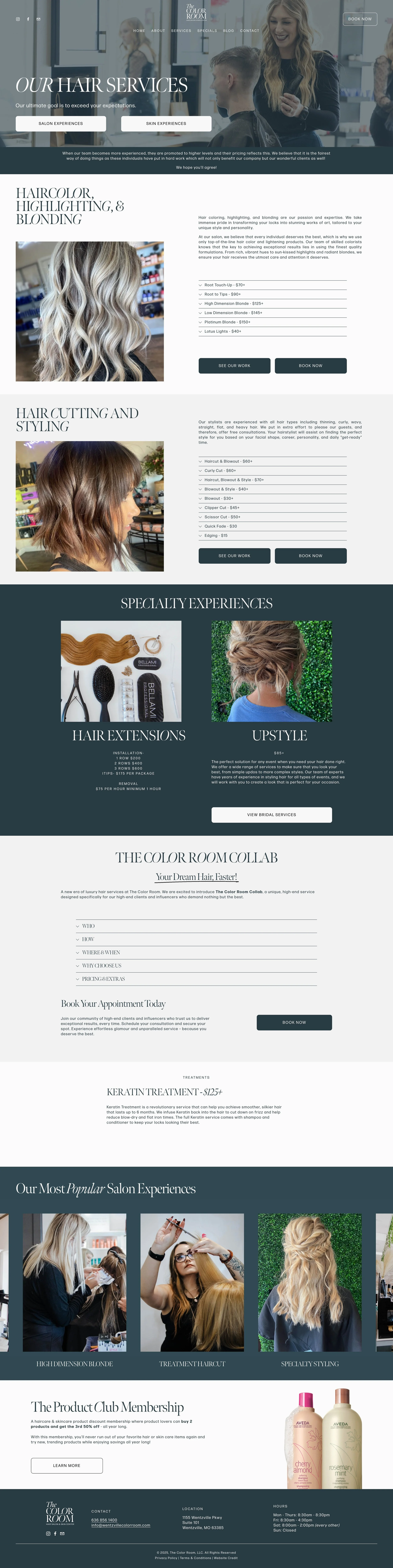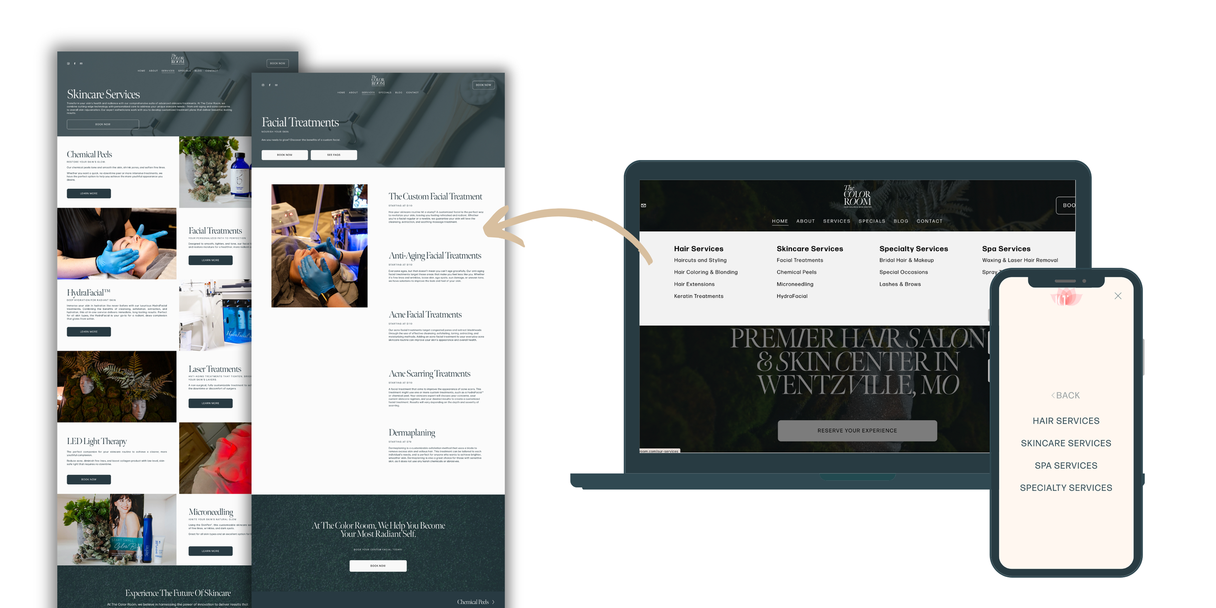 The Color Room had built a strong reputation for exceptional hair services, but they offered much more. Their menu included advanced skincare treatments like microneedling, chemical peels, and laser services. However, their website structure – built when they first opened – wasn't growing with their business.